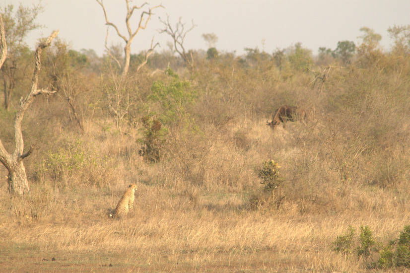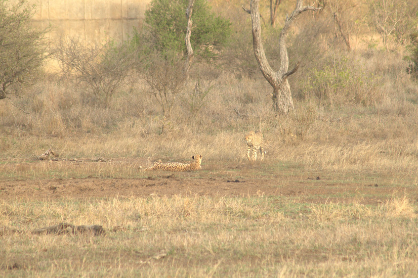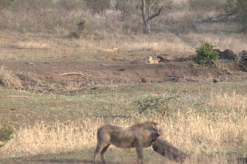 The cheetahs were fascinating. One was relaxed, the other, restless. Eventually, they caught sight of the wildebeest and a particularly muscular warthog. I kept taking photos, capturing the little progression of their attention and movement.